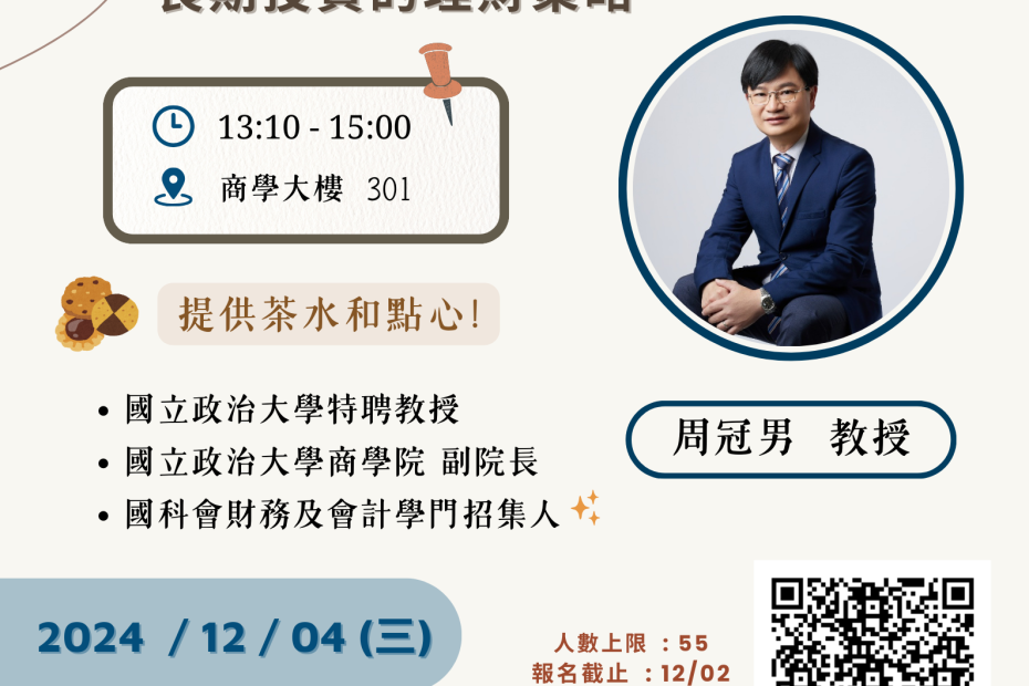 活動日期:113.12.04起訖時間: 13:00-15:30 地點:商學301 演 講 者:周冠男教授